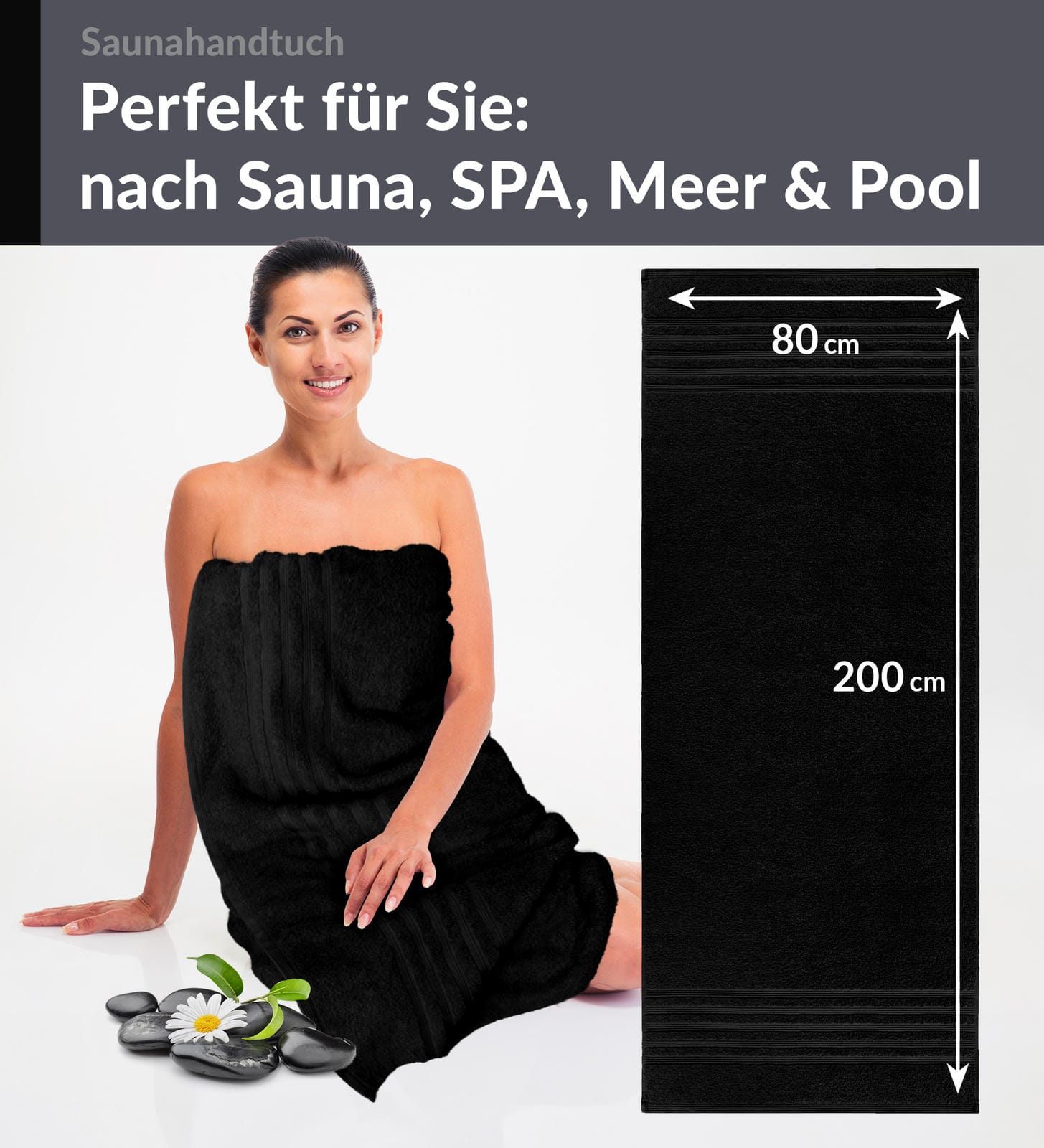 Saunahandtuch 80x200 cm Schwarz